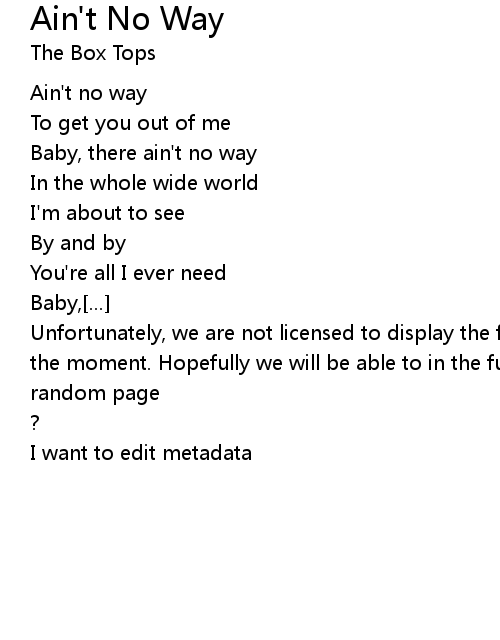 | Song | Ain't No Way |