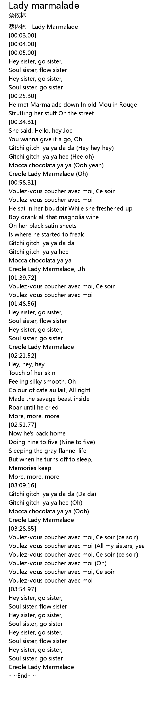 | [00:52.37] | Creole Lady Marmalade Oh |