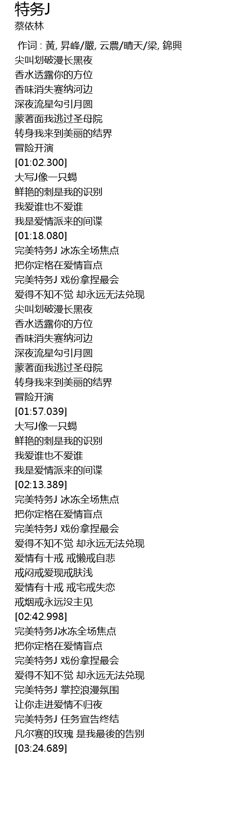 | [03:16.298] | 完美特务J 任务宣告终结 |