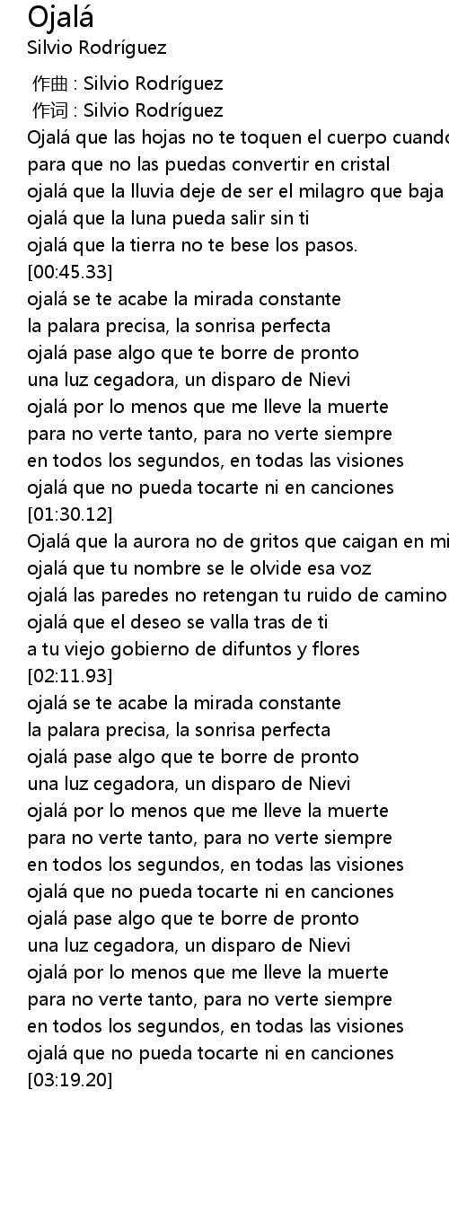 | [00:01.000] | 作词 : Silvio Rodríguez |
