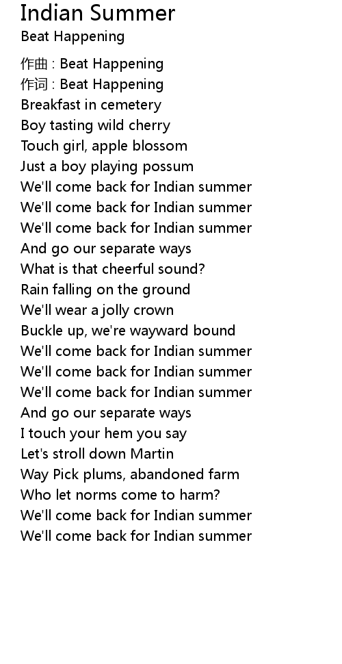 | Song | Indian Summer |