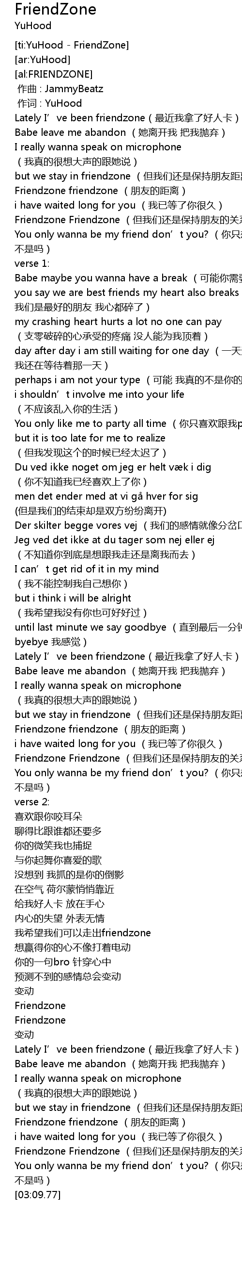 | [03:00.42] | Friendzone Friendzone (但我们还是保持朋友的关系) |