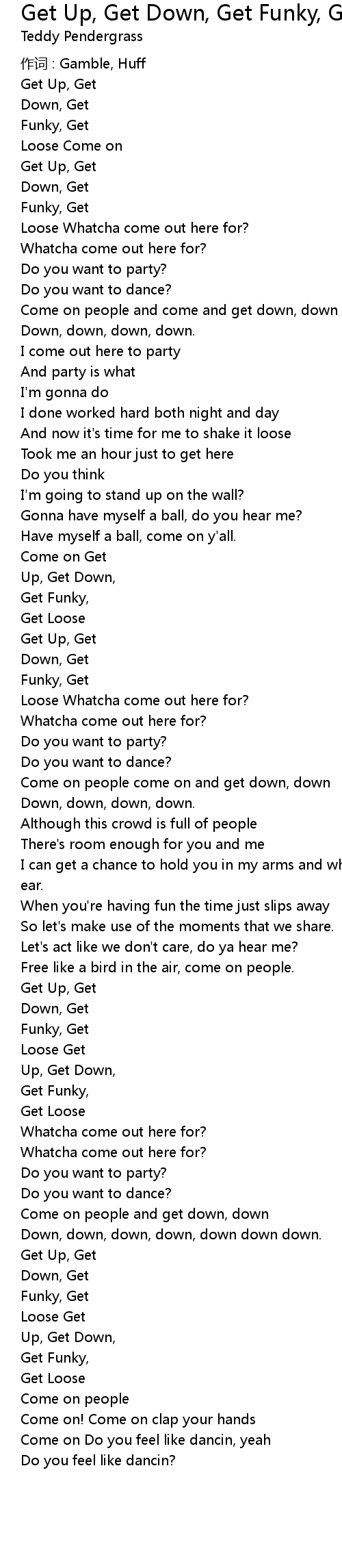 | Come on people come on and get down, down | |