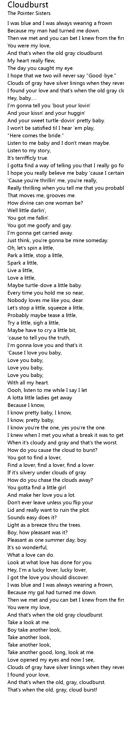 I found your love and that's when the old gray cloudburst. |