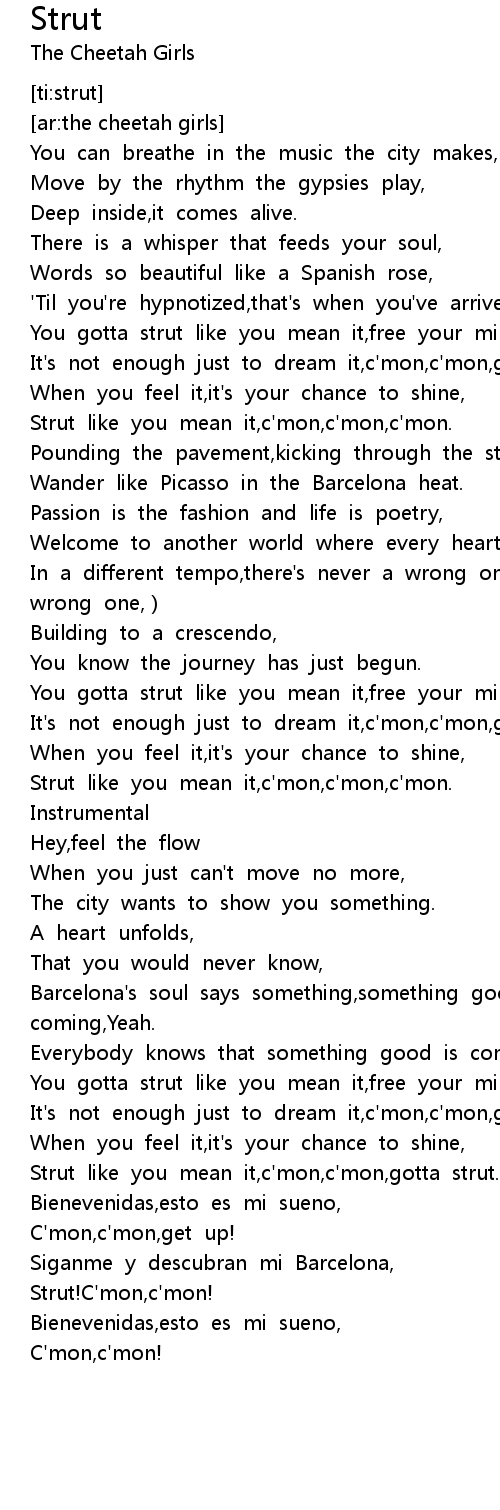 | [00:56.45] | Strut like you mean it, c' mon, c' mon, c' mon. |
