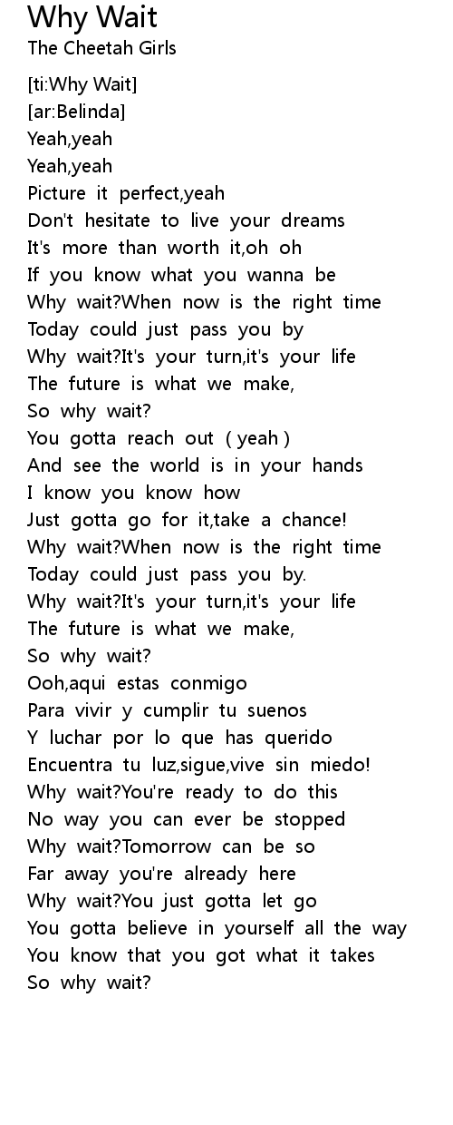 | [00:42.456] | Why wait? It' s your turn, it' s your life |
