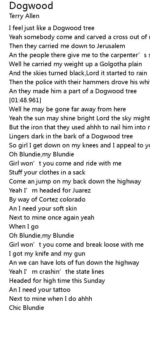 | [01:40.167] | An they made him a part of a Dogwood tree |
