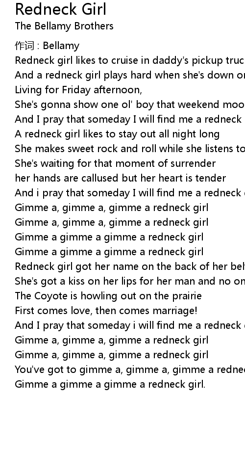 | You' ve got to gimme a, gimme a, gimme a redneck girl, | |