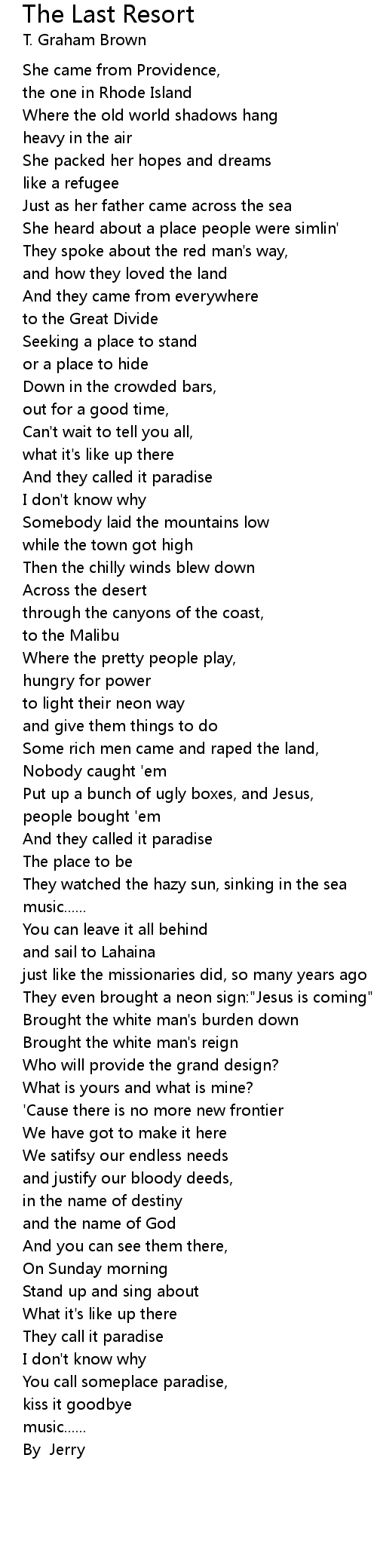 The Last Resort Lyrics