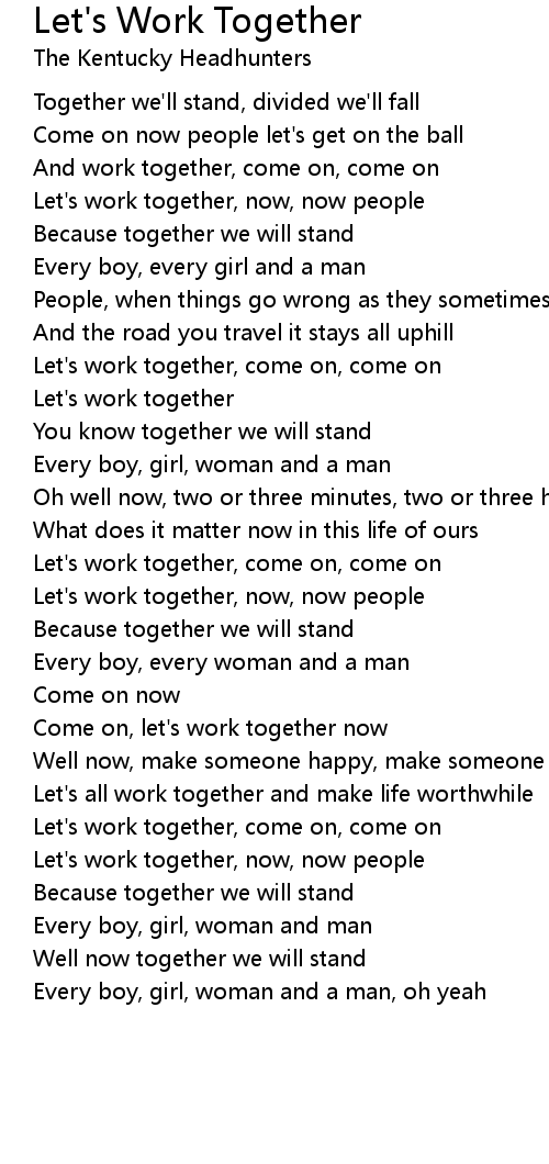 Come on, let's work together now |