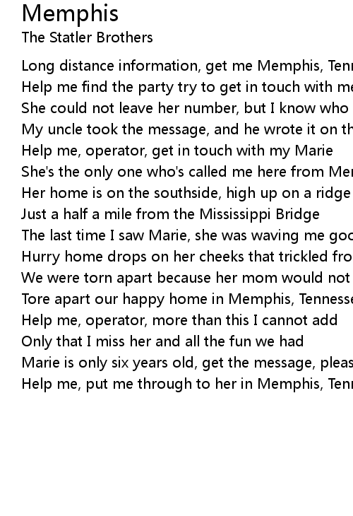 Help me, put me through to her in Memphis, Tennessee |