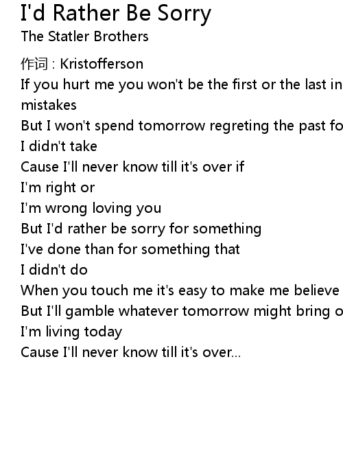 | Song | I'd Rather Be Sorry |