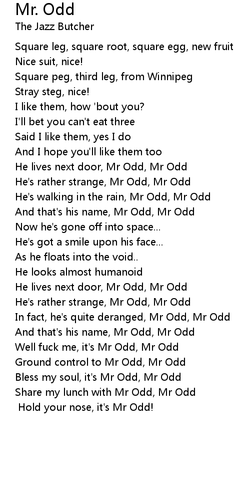 And that's his name, Mr Odd, Mr Odd |