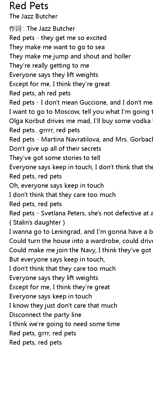 | Red pets I don' t mean Guccione, and I don' t mean Hugh | |