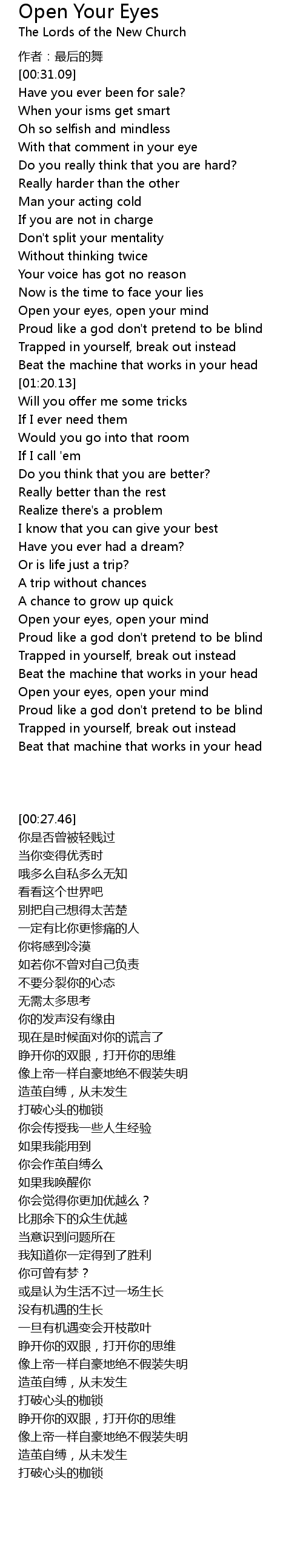 | [01:02.36] | Open your eyes, open your mind |