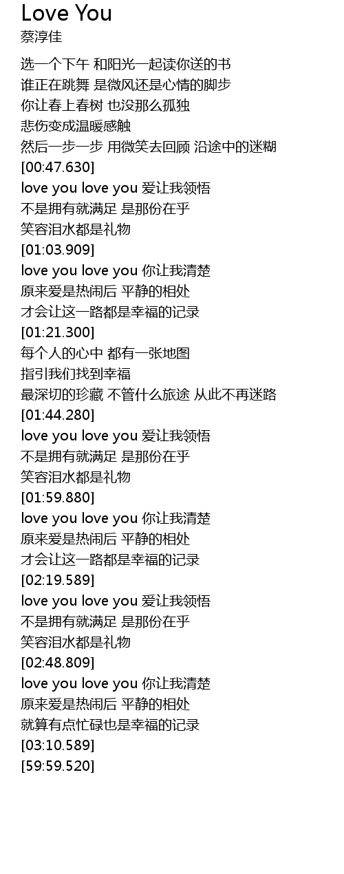 | [00:49.0] | love you love you ài ràng wǒ lǐng wù |