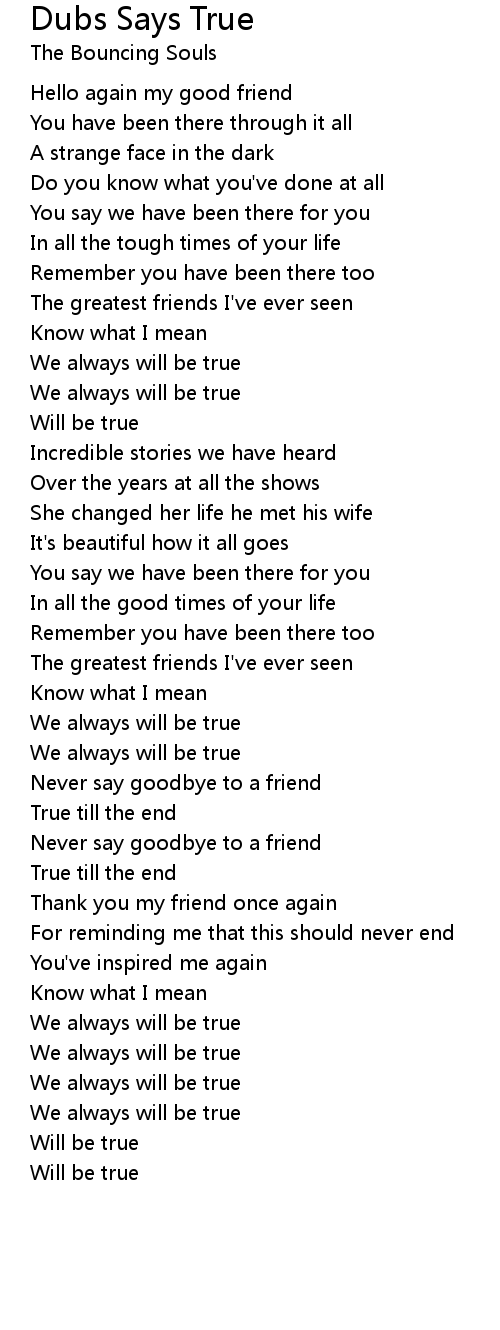 We always will be true |
