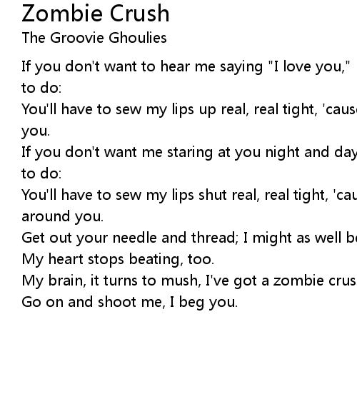 My brain, it turns to mush, I've got a zombie crush. |
