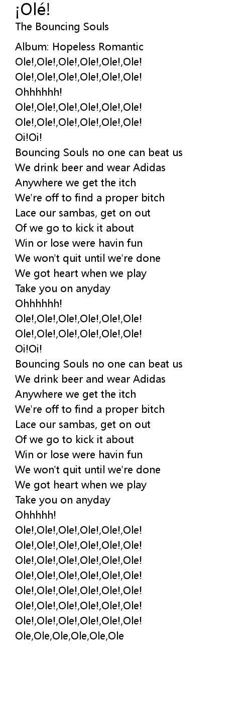 Ole!,Ole!,Ole!,Ole!,Ole!,Ole! |