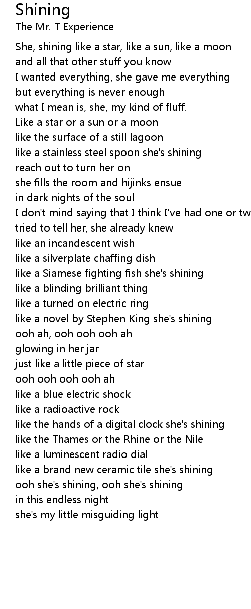 ooh she's shining, ooh she's shining |