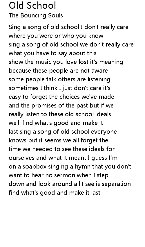 sing a song of old school we don't really care |