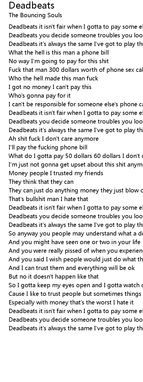 Deadbeats it isn't fair when I gotta to pay some else's share |