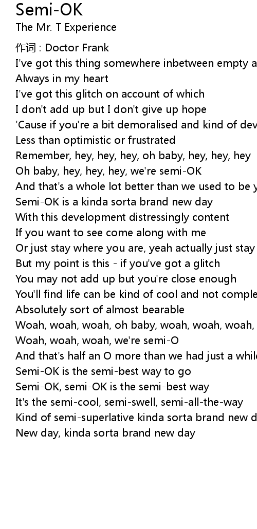 | Oh baby, hey, hey, hey, we're semi-OK | |