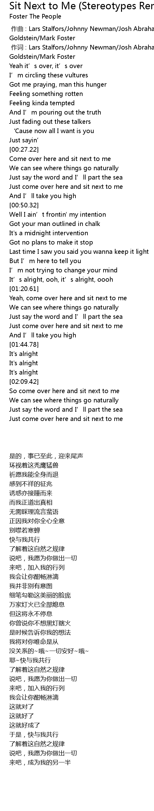 | [01:21.81] | Yeah, come over here and sit next to me |
