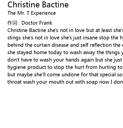 | Christine Bactine she' s not in love but at least she' s clean she' s back she | |
