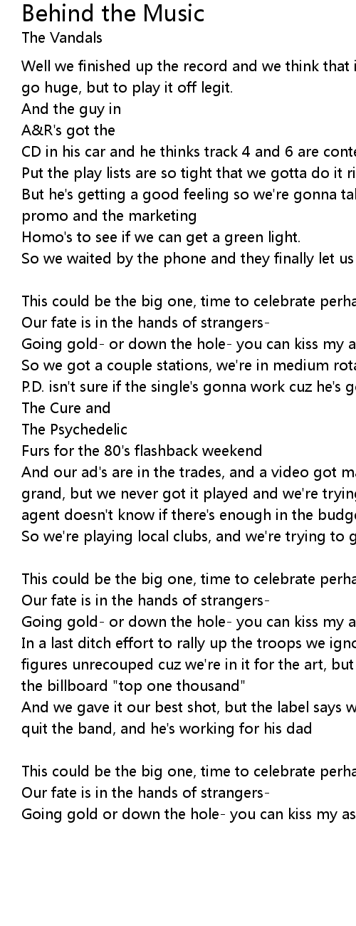 So we're playing local clubs, and we're trying to get a "buzz" and we got a good review in "Music Connection" [Chorus:] |