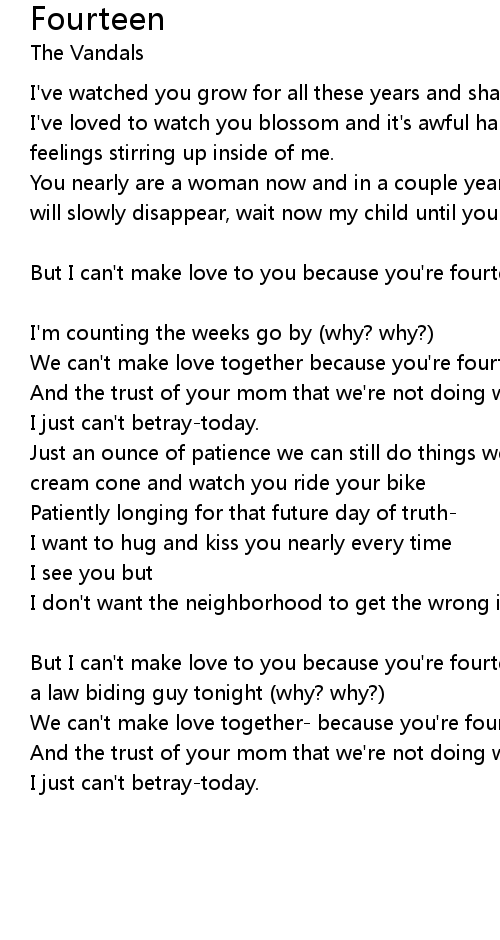 But I can't make love to you because you're fourteen just a hug and a sigh from a law biding guy tonight (why? why?) |