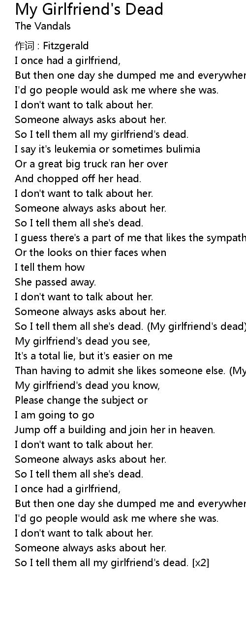 | So I tell them all she's dead. (My girlfriend's dead) | |