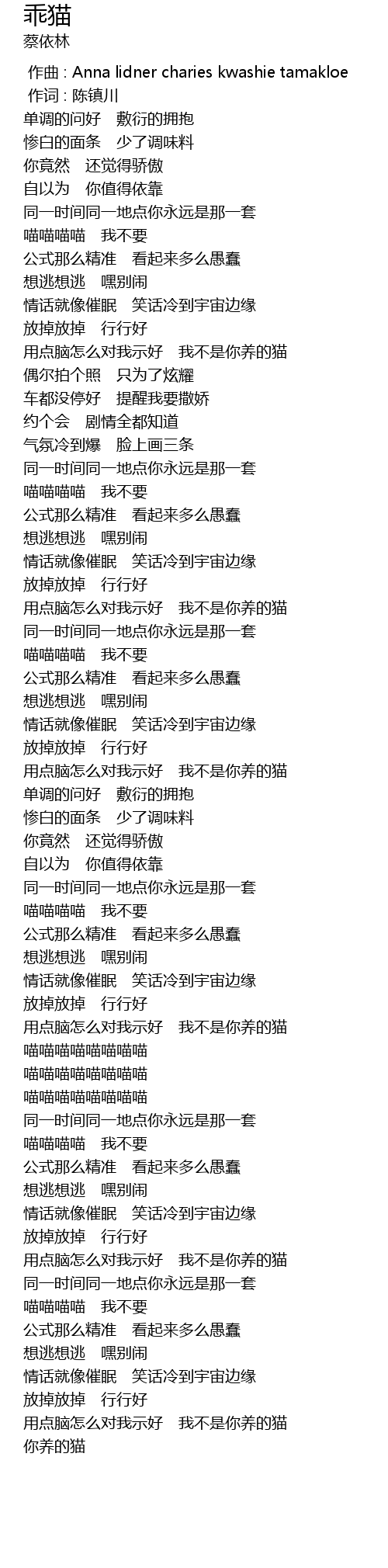 | [02:22.76] | 喵喵喵喵 我不要 |