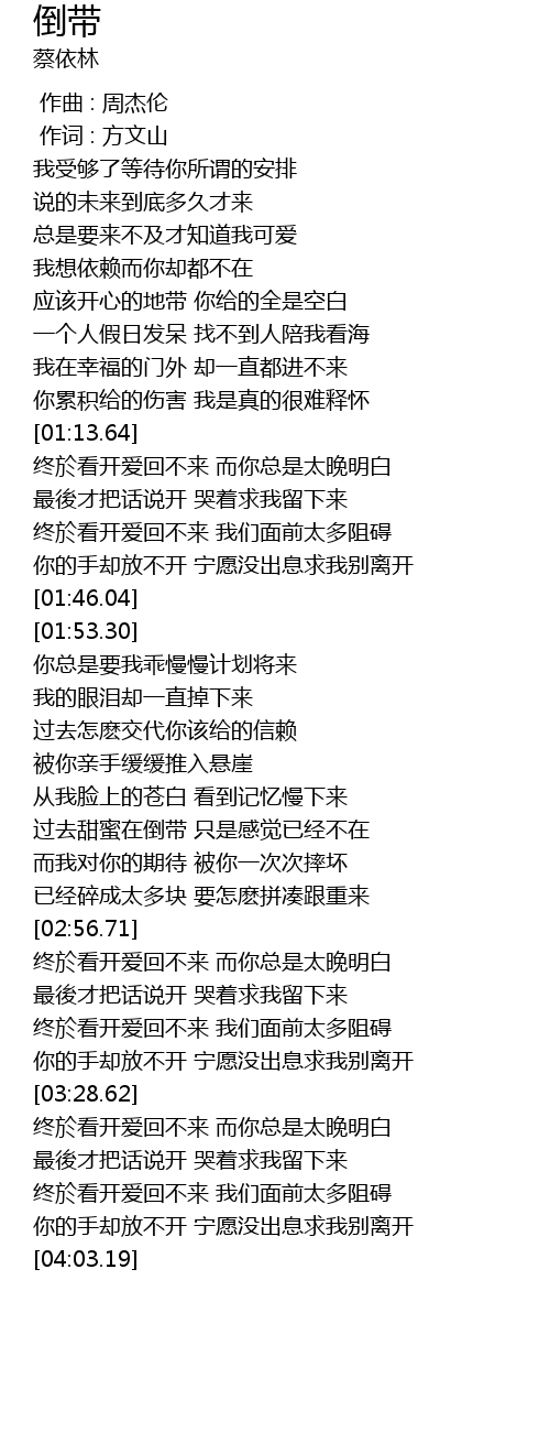 | [03:45.08] | 终於看开爱回不来 我们面前太多阻碍 |