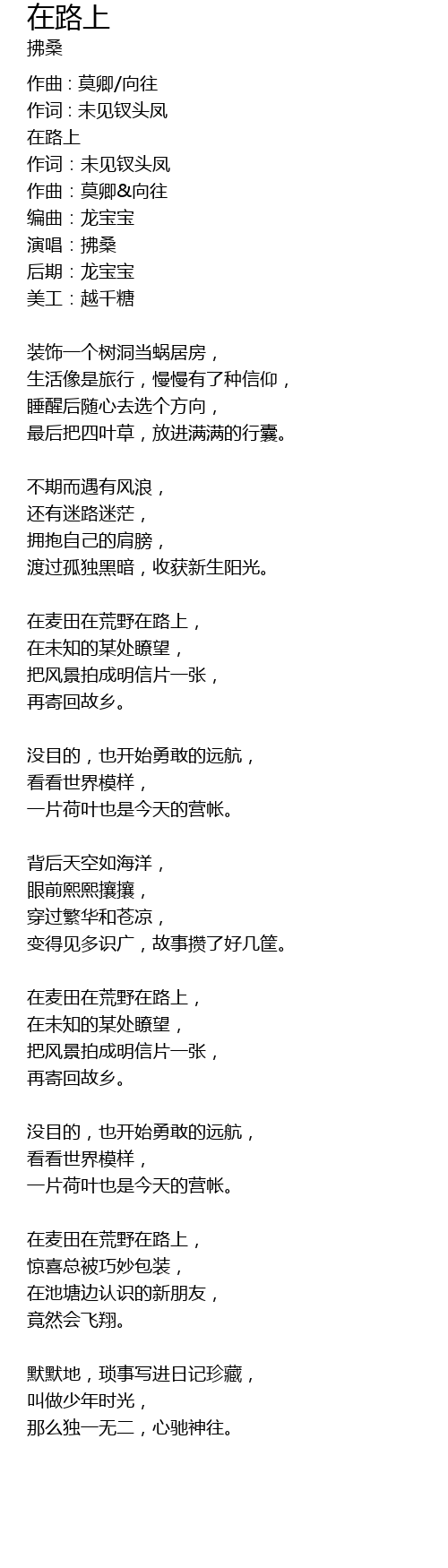 | zài mài tián zài huāng yě zài lù shàng, | |