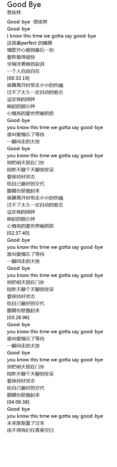 | [00:00.62] | Goodbye cai yi lin |