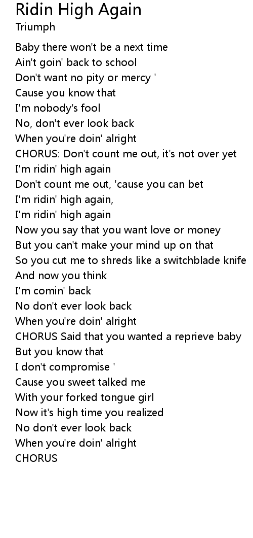 I'm ridin' high again |