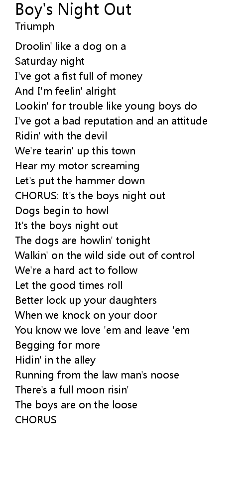 CHORUS: It's the boys night out |