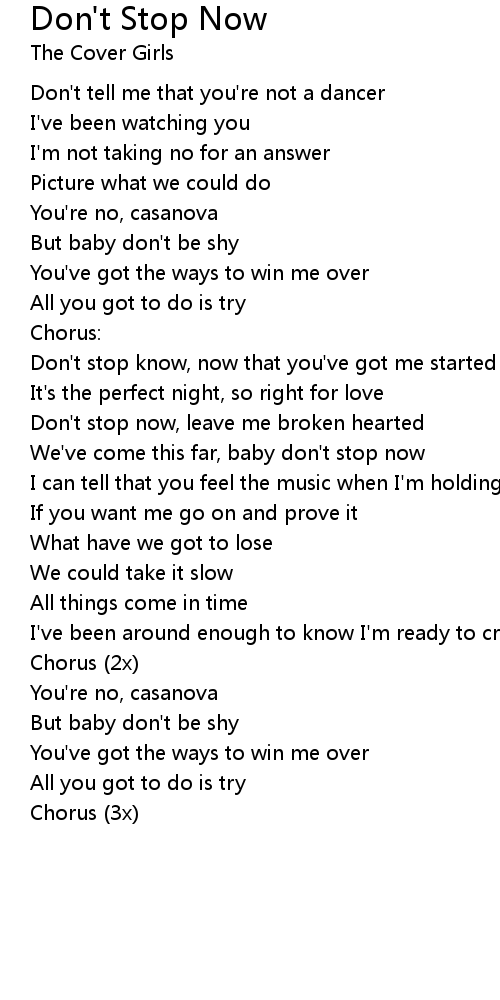 Don't stop know, now that you've got me started |