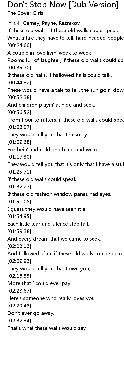 | [01:30.46] | If these old walls could speak. |