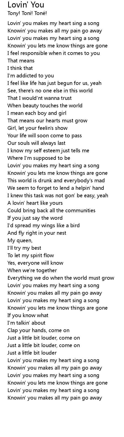 Lovin' you makes my heart sing a song |