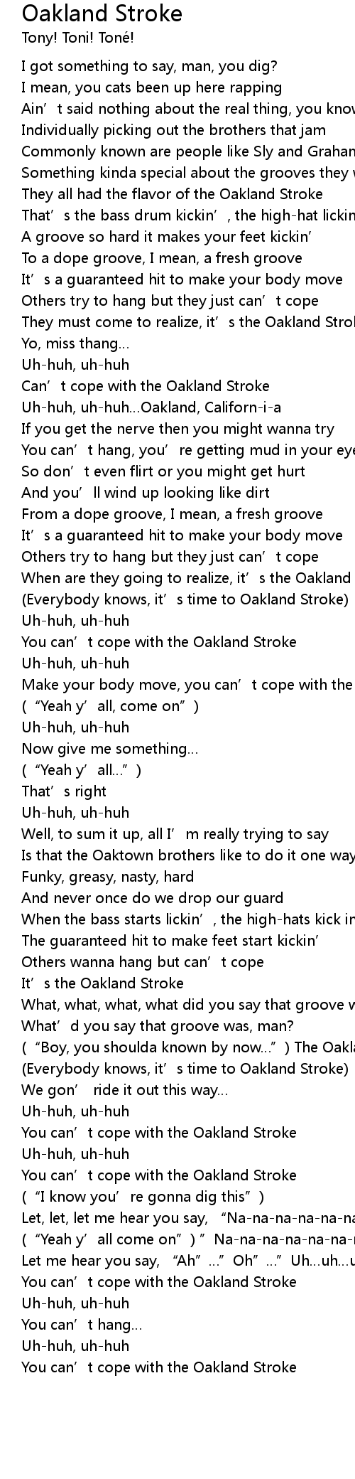 | [02:59.867] | You can' t cope with the Oakland Stroke |