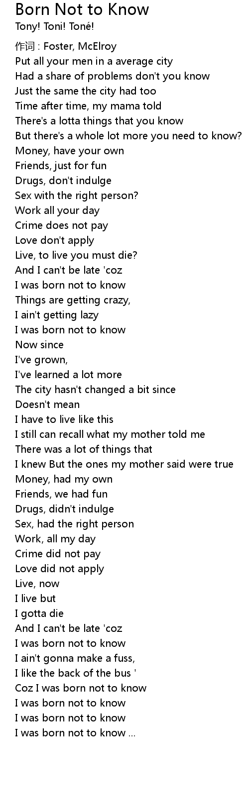 | Coz I was born not to know | |