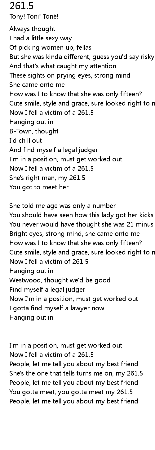 She's the one that tells turns me on, my 261.5 |