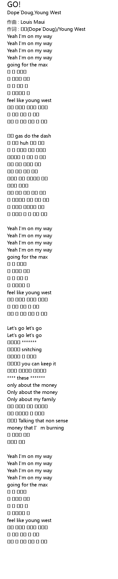 | 作词 : 돕덕(Dope`Doug)/Young West | |