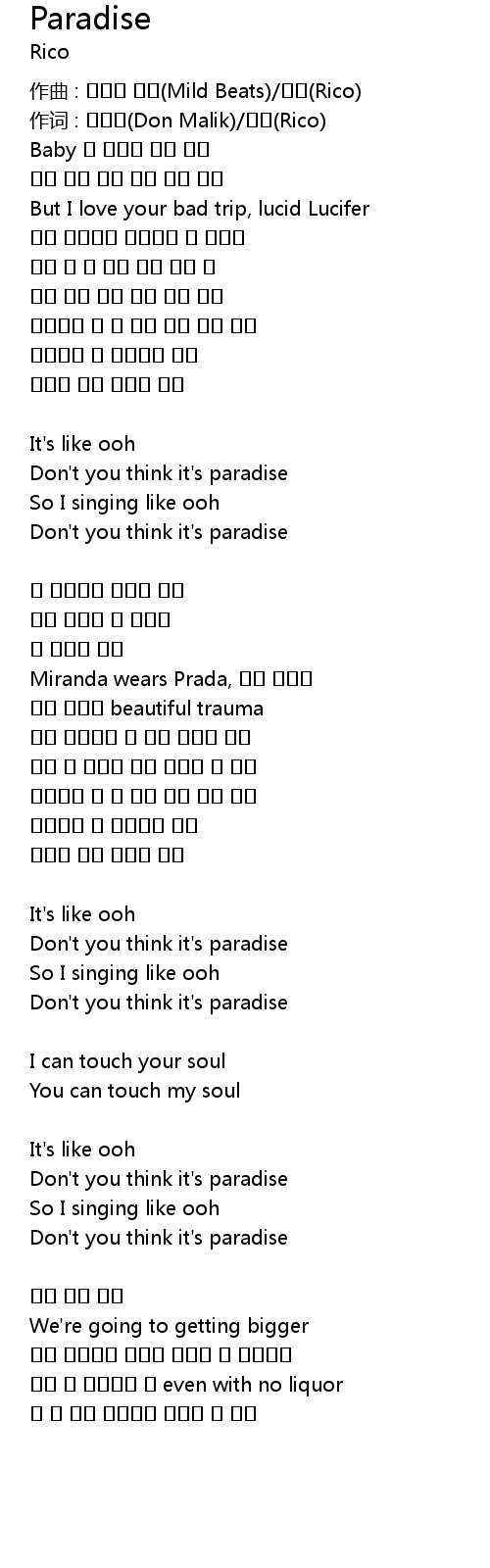 | 作词 : 던말릭(Don Malik)/리코(Rico) | |