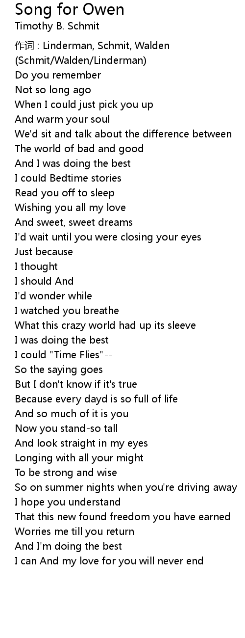 | 作词 : Linderman, Schmit, Walden | |