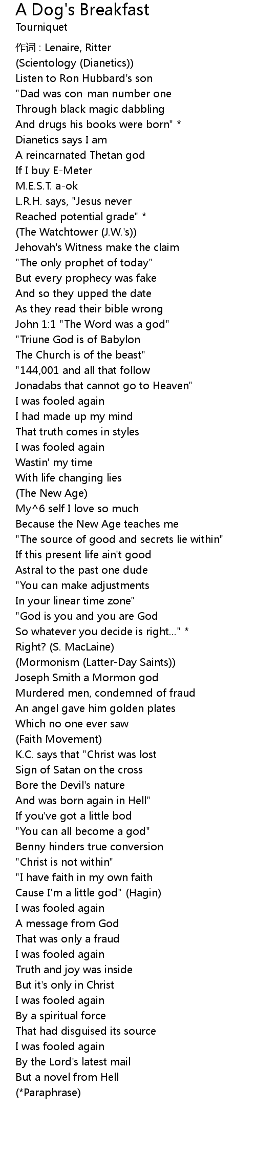 | Song | A Dog's Breakfast |
