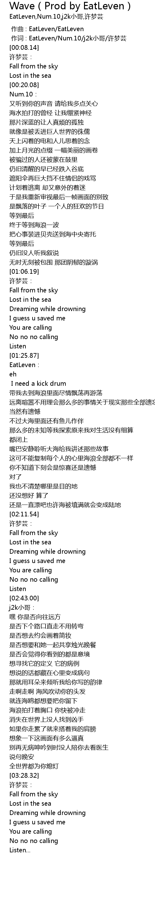 | [00:01.000] | 作词 : EatLeven/Num.10/j2k小哥/许梦芸 |