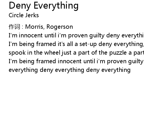 | I' m being framed innocent until i' m proven guilty deny everything deny everything deny everything deny everything |
